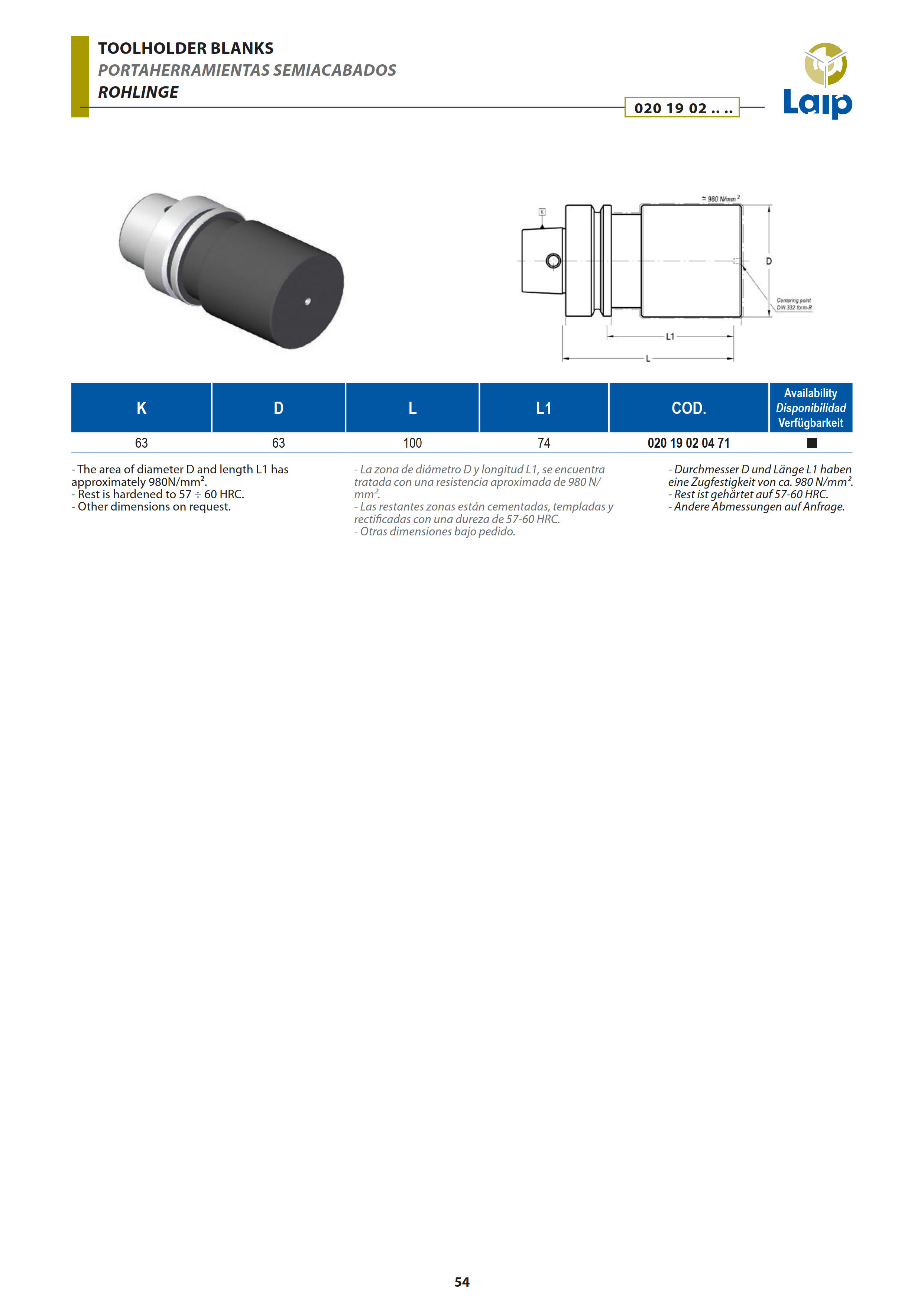 E272-010 02019020471 TRZPIEŃ PÓŁFABRYKAT HSK-F 63-63-L100 SZT. 663,69
