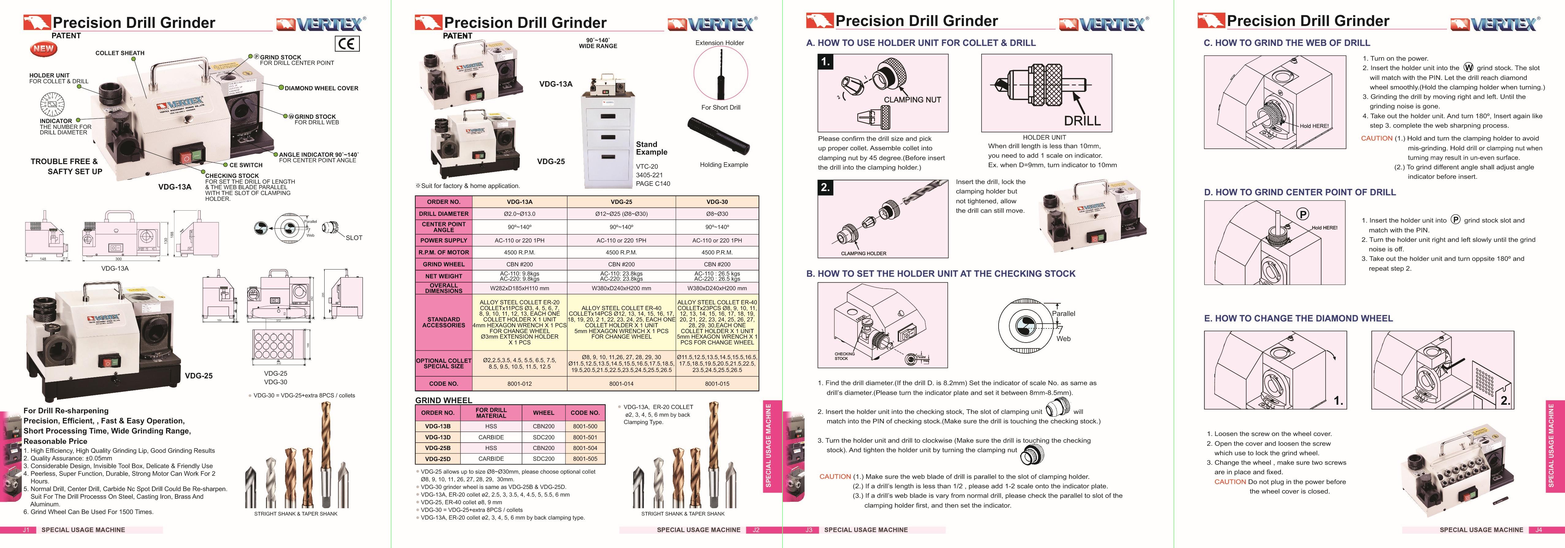 W zależności od modelu, ostrzarki posiadają zakresy od 2,5 mm do 34 mm średnicy ostrzonych wierteł. Ostrzarki do wierteł w prosty i bezpieczny sposób ostrzą powierzchnię czołową wierteł (powierzchnię przyłożenia) oraz wykonują korektę ścinu (powierzchnię natarcia rdzenia wiertła).