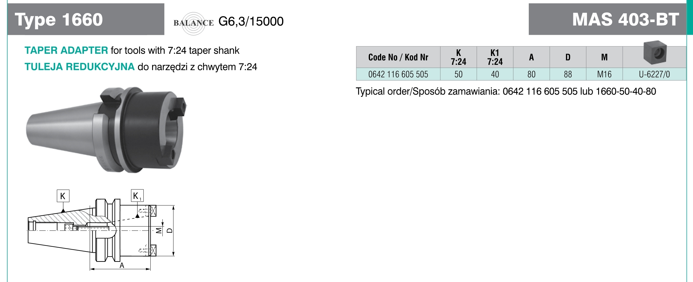 E198-080 0642116605505 TULEJA REDUKCYJNA BT50-40-L80 SZT. 609,84