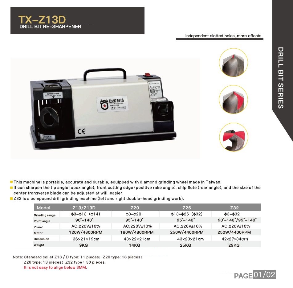 W zależności od modelu, ostrzarki posiadają zakresy od 2,5 mm do 34 mm średnicy ostrzonych wierteł. Ostrzarki do wierteł w prosty i bezpieczny sposób ostrzą powierzchnię czołową wierteł (powierzchnię przyłożenia) oraz wykonują korektę ścinu (powierzchnię natarcia rdzenia wiertła).
