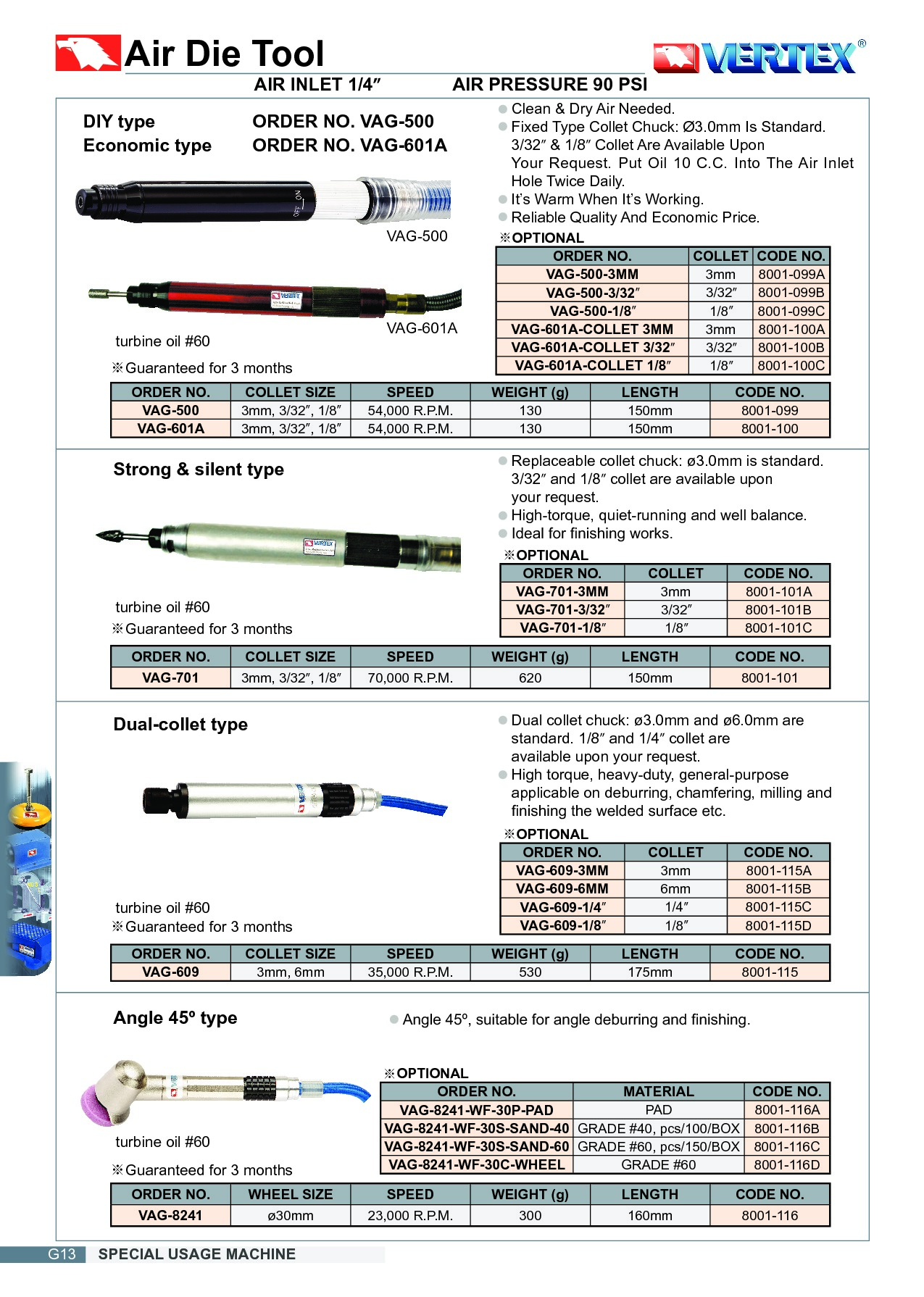 K301-100 8001-100 SZLIFIERKA PNEUMATYCZNA PROSTA VAG-601A fi3 54.000 SZT. 477,08