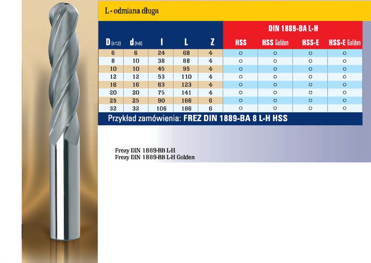 Frezy walcowe, długi, z chwytem walcowym, z czołem kulistym, do matryc.