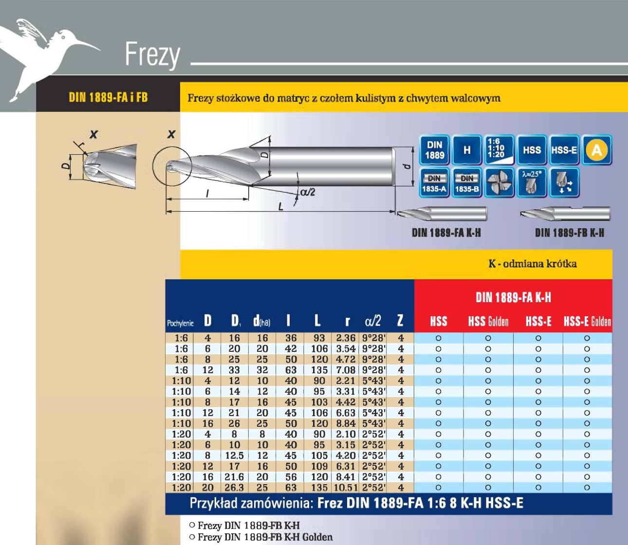 FREZ STOŻKOWY DIN 1889-FA 1:6 6 K-H HSS
