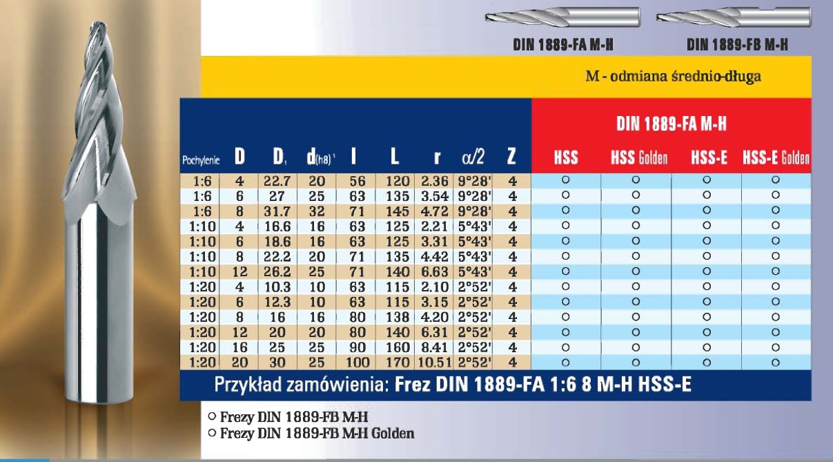 FREZ STOŻKOWY DIN 1889-FA 1:6 4 M-H HSS-E
