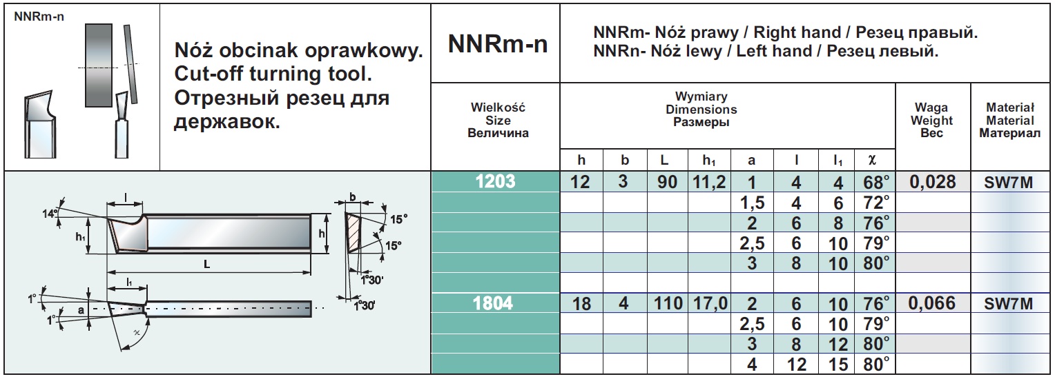 A904-140 NNRM120315SW7M NÓŻ OBCINAK OPRAWKOWY NNRm 1203-1.5 SW7M SZT. 108,76
