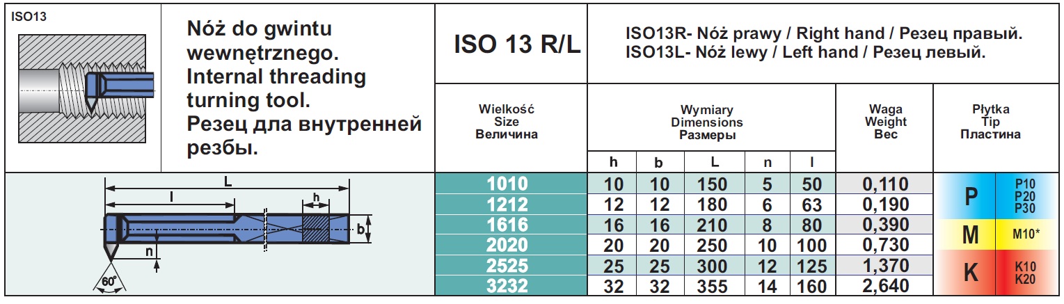 NÓŻ TOKARSKI NNGd 1010 K10 (ISO13R)