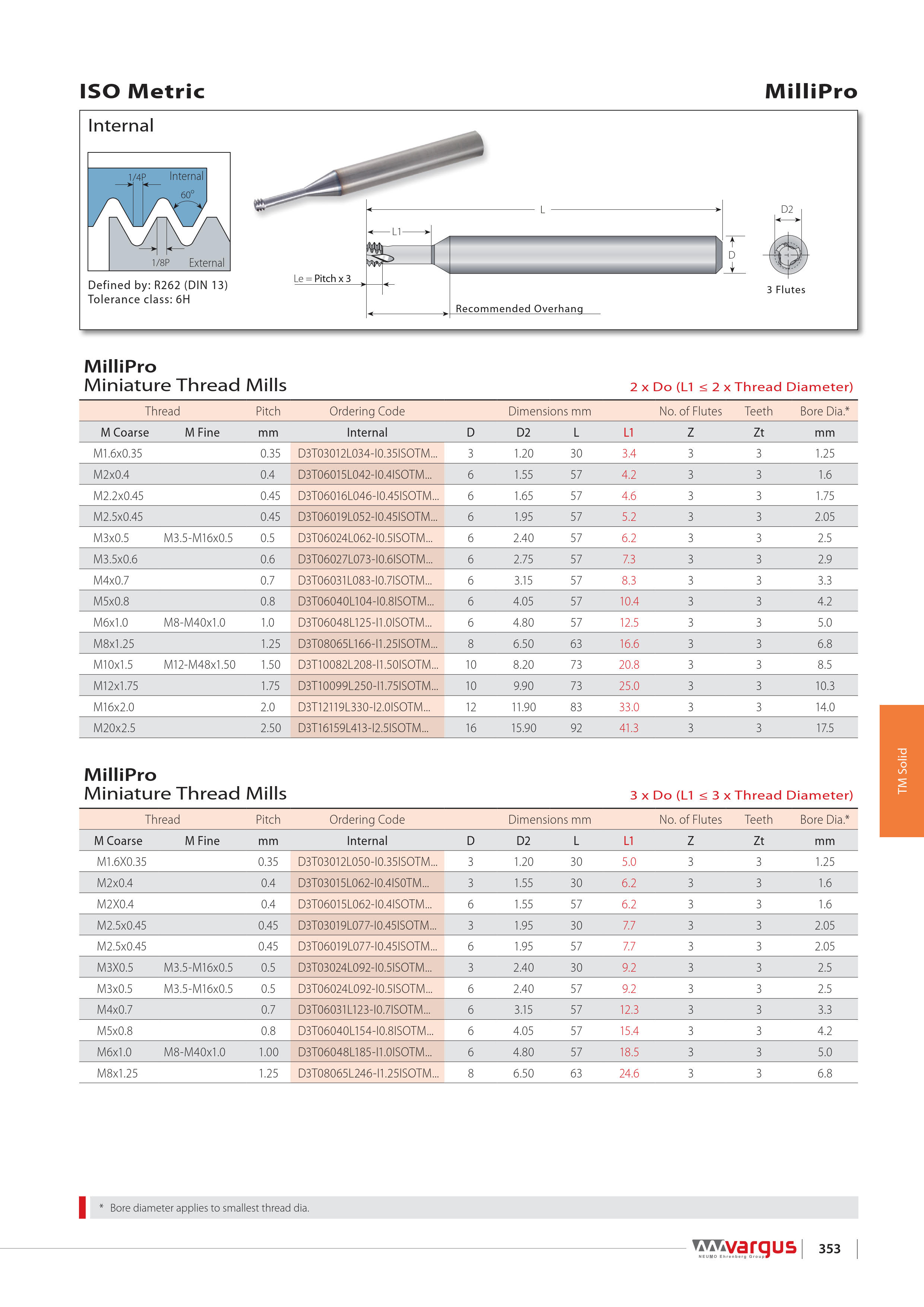 B847-020 102-00100 Frez wewnętrzny D3 T03015L062-I0.4ISO TM VTH M2x0.4 szt. 459,36