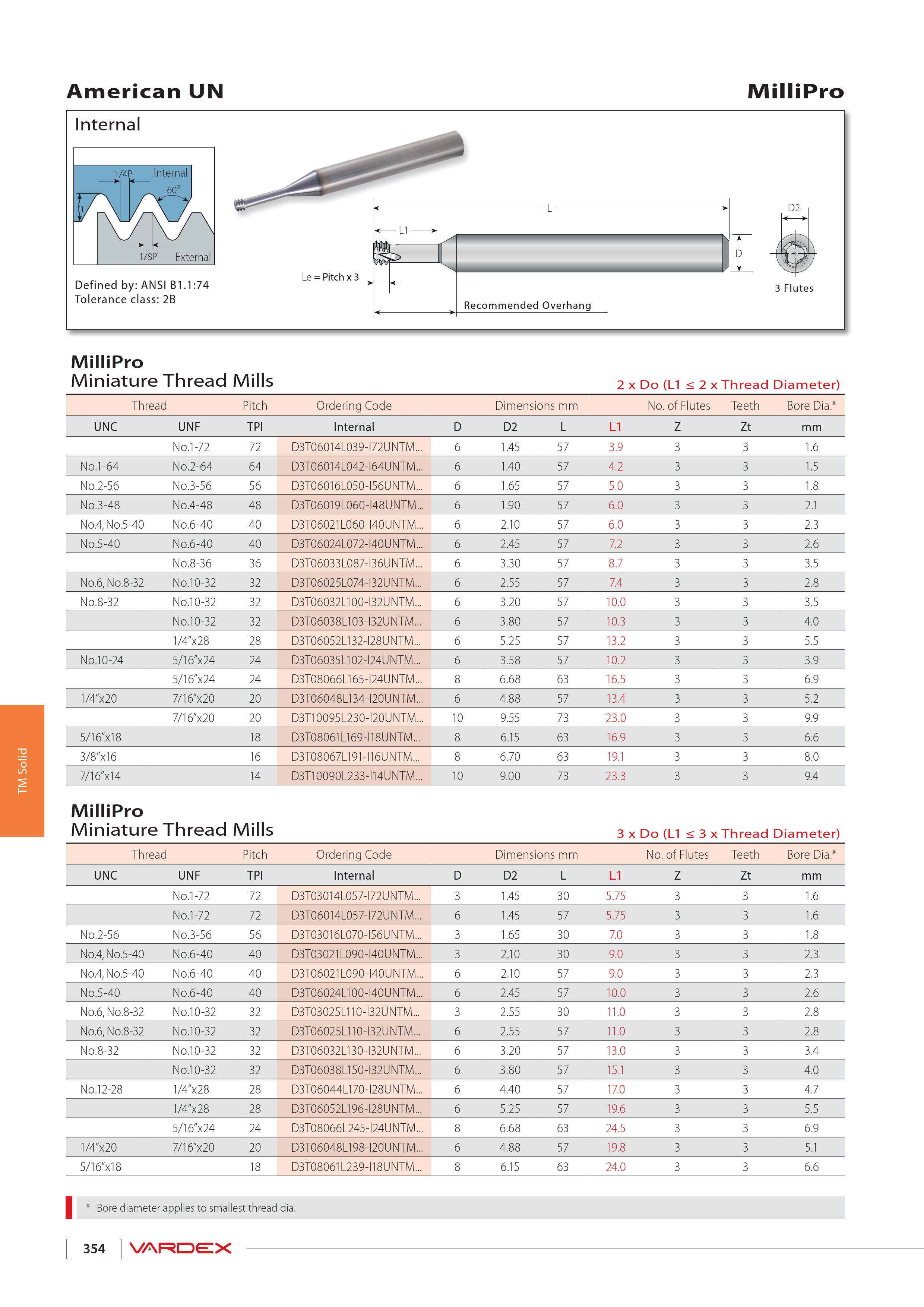 Frez wewnętrzny D3T06032L100-I32UN TM VTH No.8-32