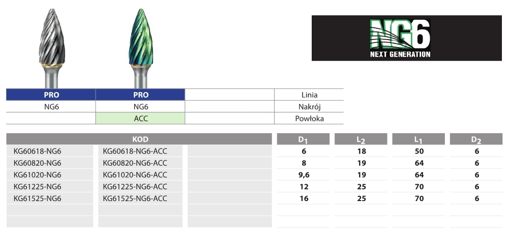 FREZ PILNIKOWY OSTROŁUKOWY ZAOKR. F102006 NG6 ACC