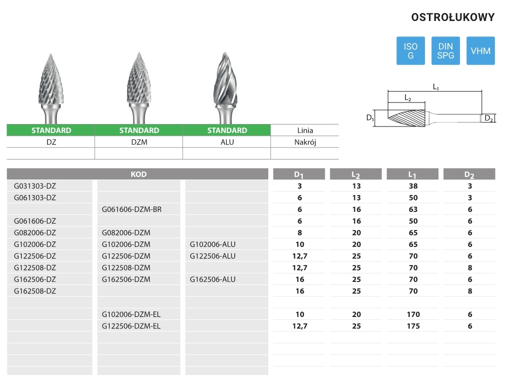 FREZ PILNIKOWY OSTROŁUKOWY G162506-DZM