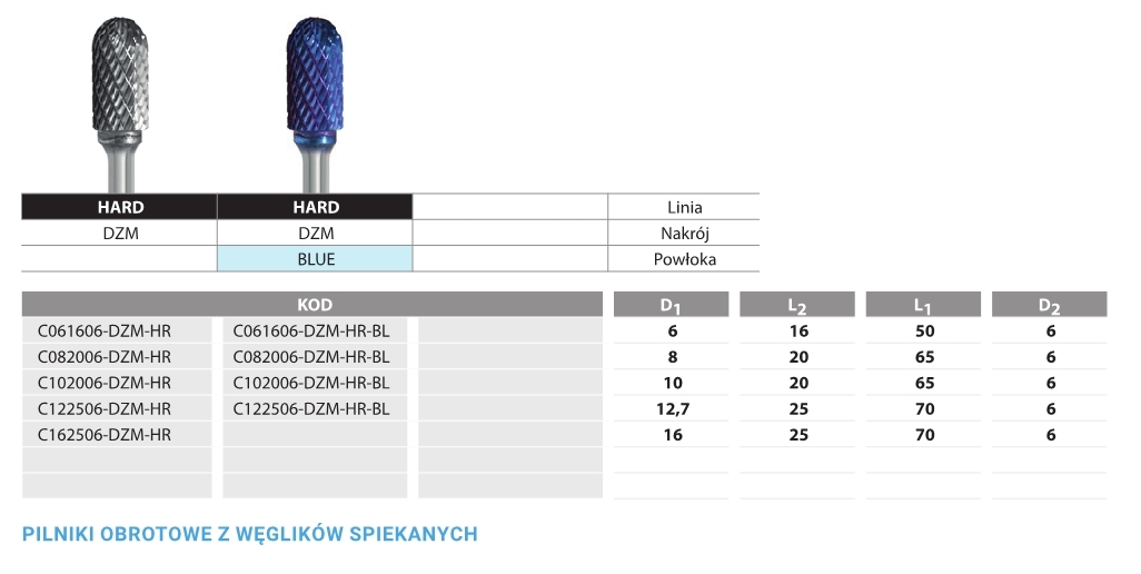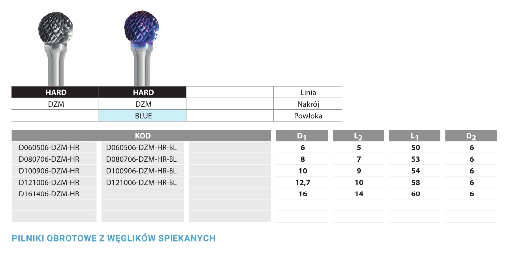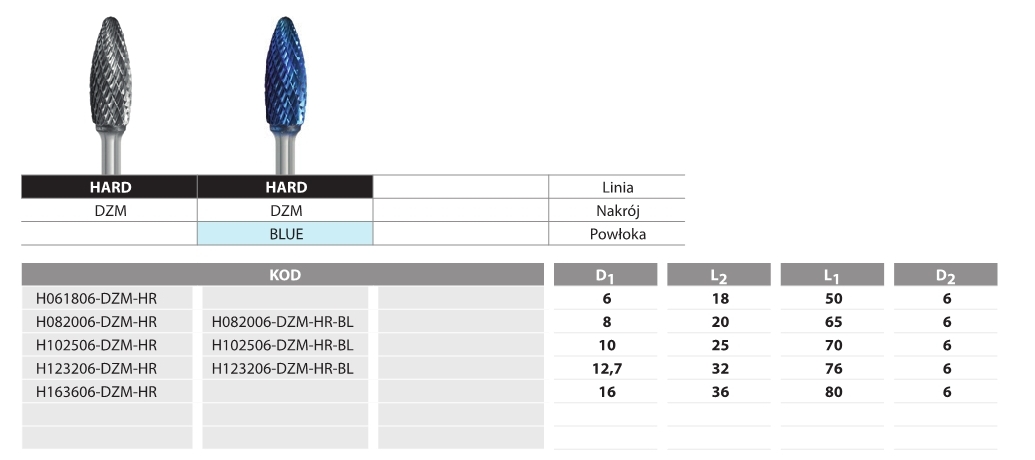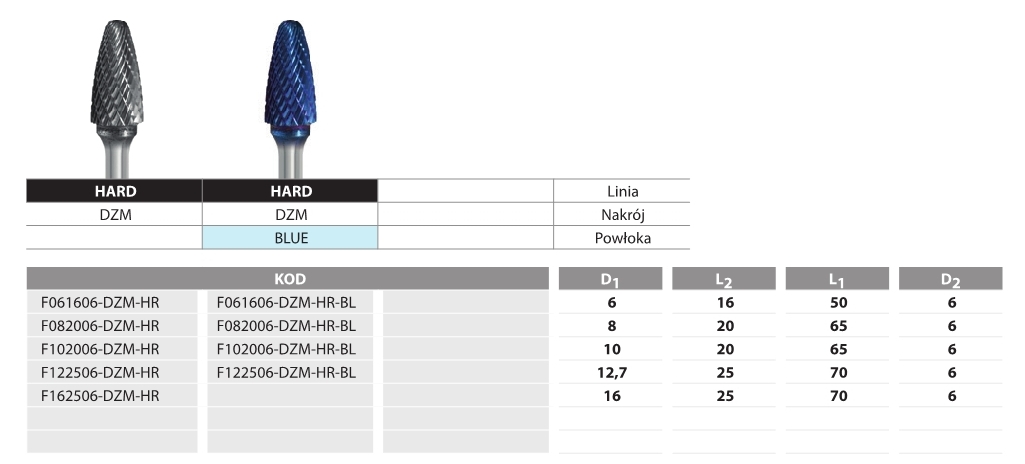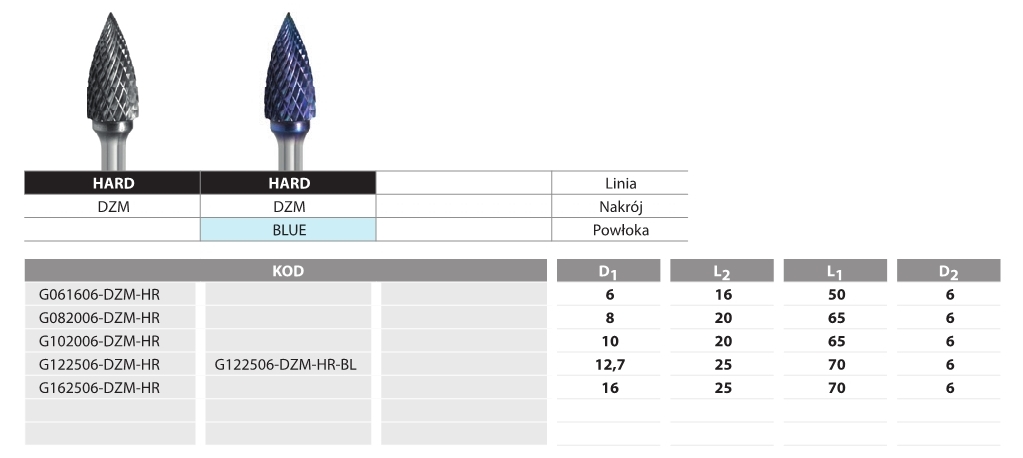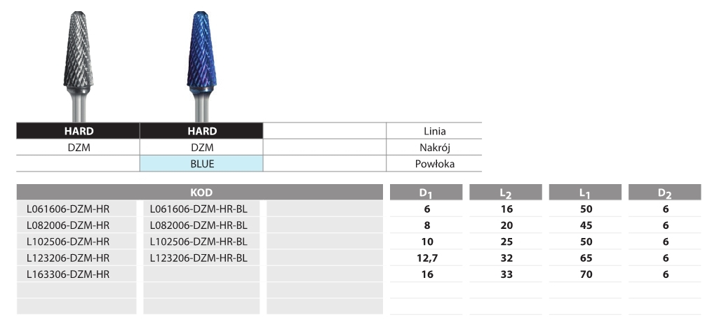 FREZ PILNIKOWY STOŻKOWY ZAOKR. L082006-DZM Hard Line Blue