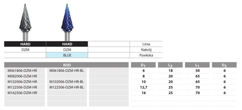 FREZ PILNIKOWY STOŻKOWY M102006-DZM Hard Line Blue