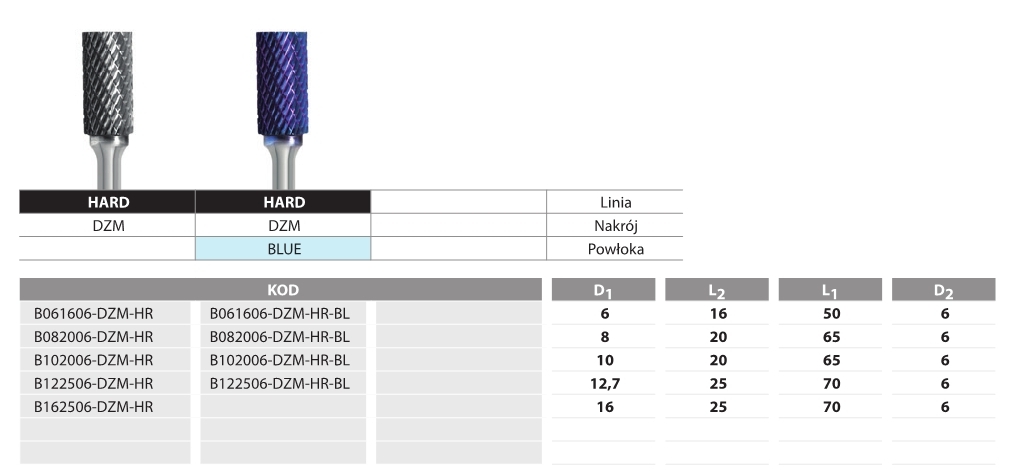 FREZ PILNIKOWY WALCOWO-CZOŁOWY B102006-DZM Hard Line Blue