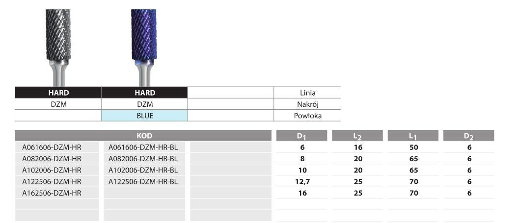 FREZ PILNIKOWY WALCOWO-CZOŁOWY B082006-DZM Hard Line Blue