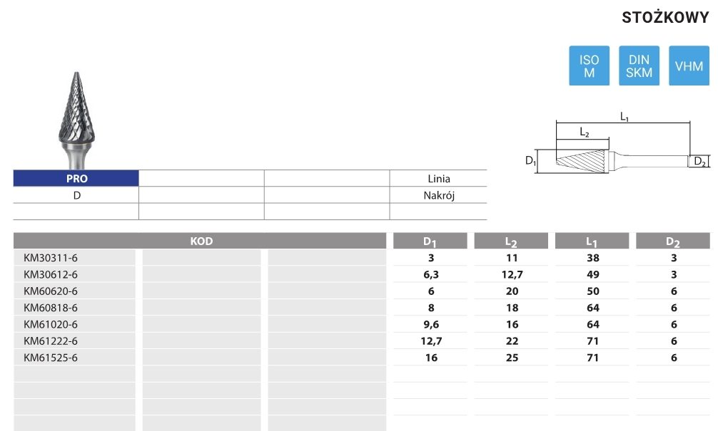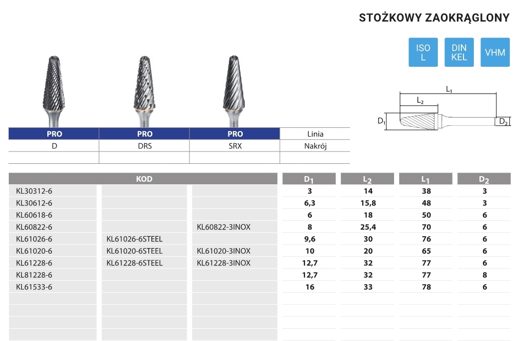 FREZ PILNIKOWY STOŻKOWY ZAOKR. L061203-D