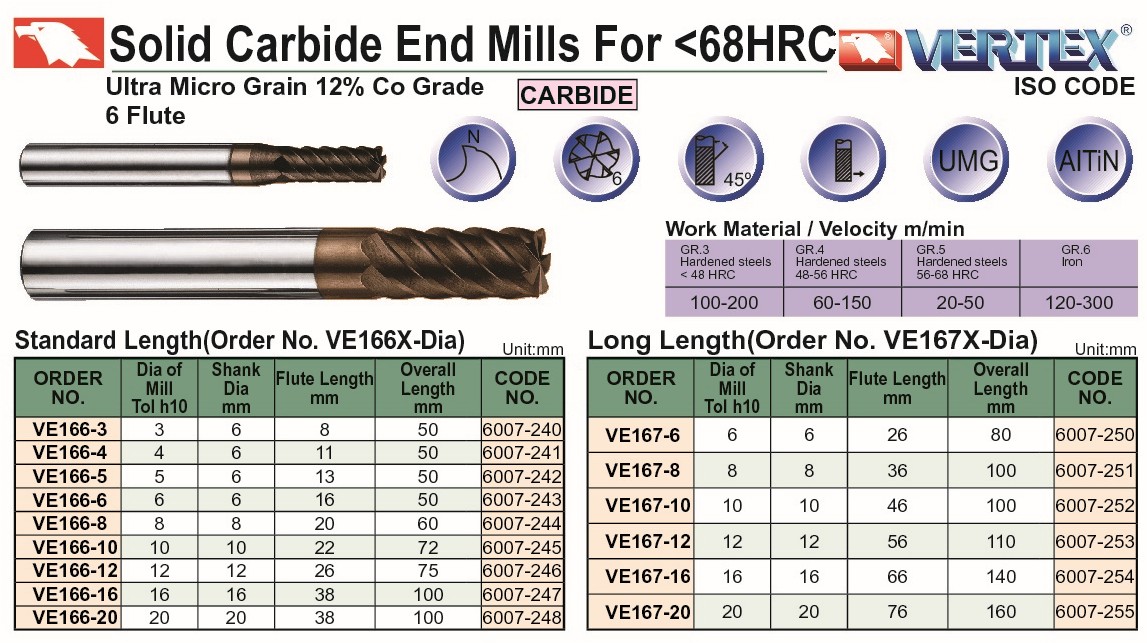 B322-120 6007-246 FREZ WĘGLIK 12.0 Z=6 AlTiN <68HRC SZT. 427,30