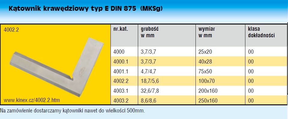 G277-020 4000 KĄTOWNIK KRAWĘDZIOWY MKSg 25X20/00 DIN 875 SZT. 87,95