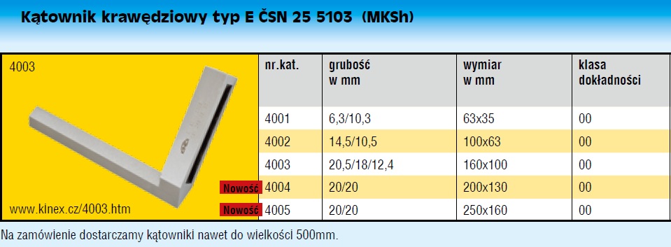 G270-060 4003 KĄTOWNIK KRAWĘDZIOWY MKSh 160X100/00 SZT. 395,71