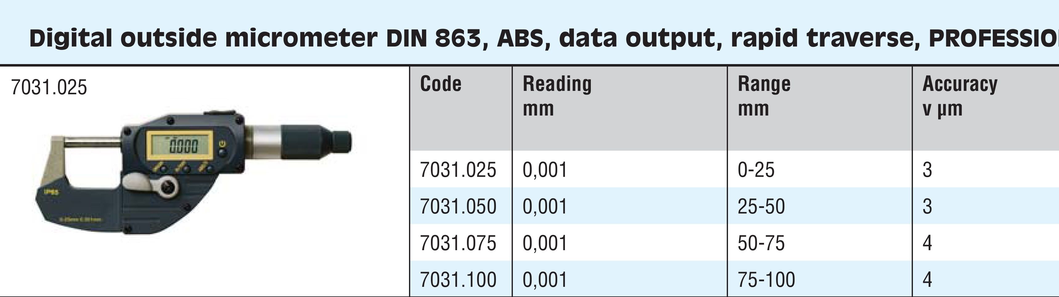 G181-200 7031.025 MIKROMETR ELEKTRONICZNY 0-25 0.001 IP65 ABS PROF. SZT. 617,78