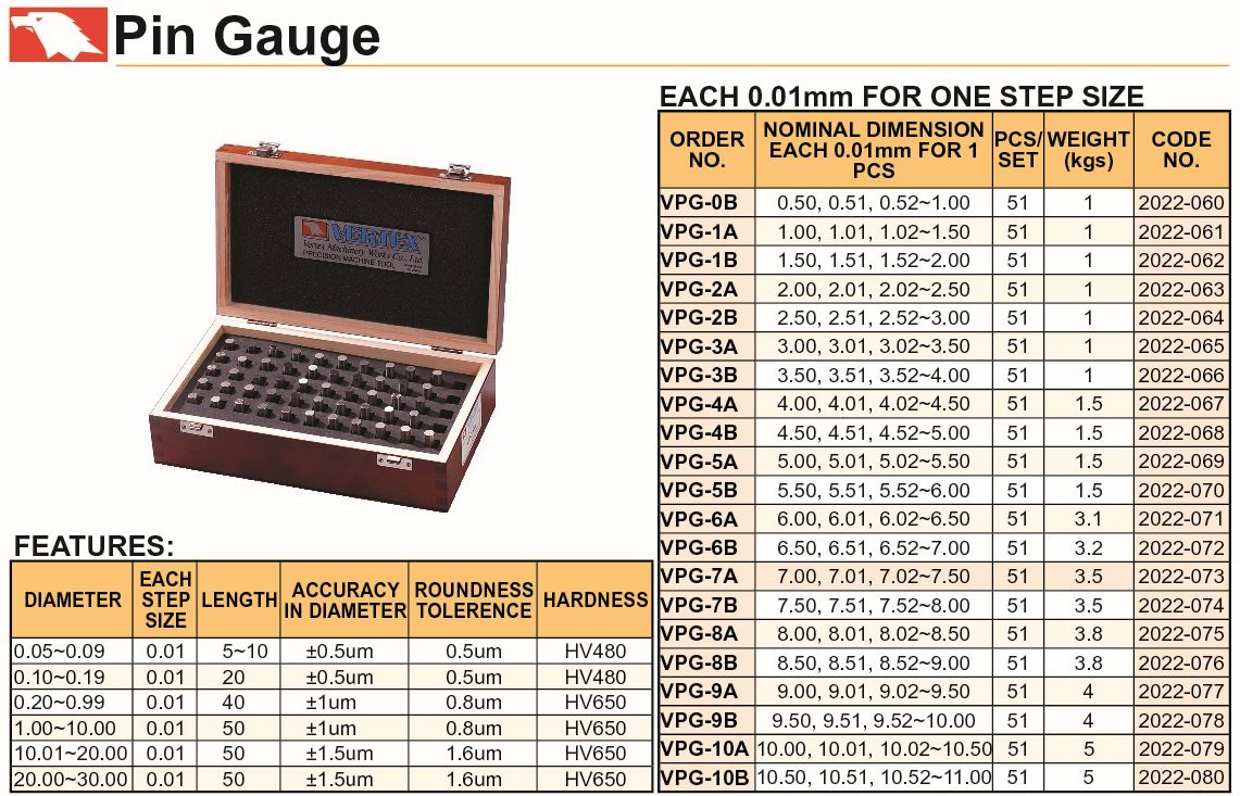 WAŁECZKI KONTROLNE VPG-10A 10.0-10.50 51 szt.