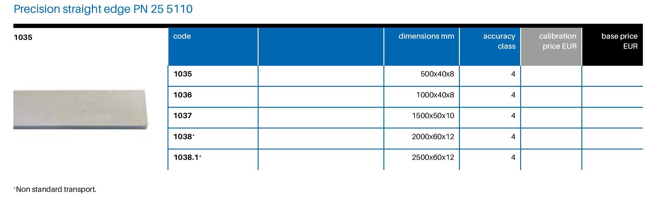 G456-300 1038.1 LINIAŁ KONTROLNY DO POMIARU PŁASKOŚCI 2500X60X12 klasa 4 SZT. 1 263,92