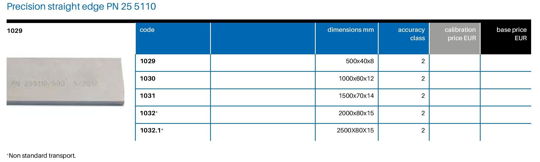 G456-100 1032.1 LINIAŁ KONTROLNY DO POMIARU PŁASKOŚCI 2500X80X15 klasa 2 SZT. 1 349,45