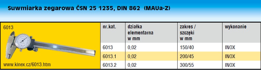 G070-060 6013.2 SUWMIARKA ZEGAROWA MAUa-Z 300/0.02 INOX SZT. 284,50