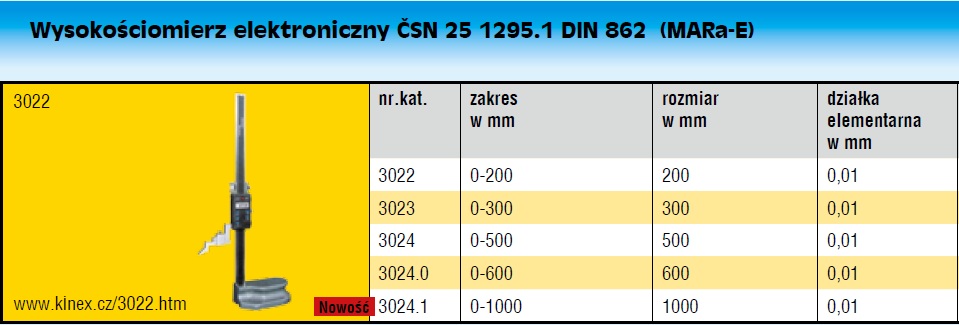 G210-060 3024 WYSOKOŚCIOMIERZ ELEKTRONICZNY MARa-E 500 SZT. 1 408,26