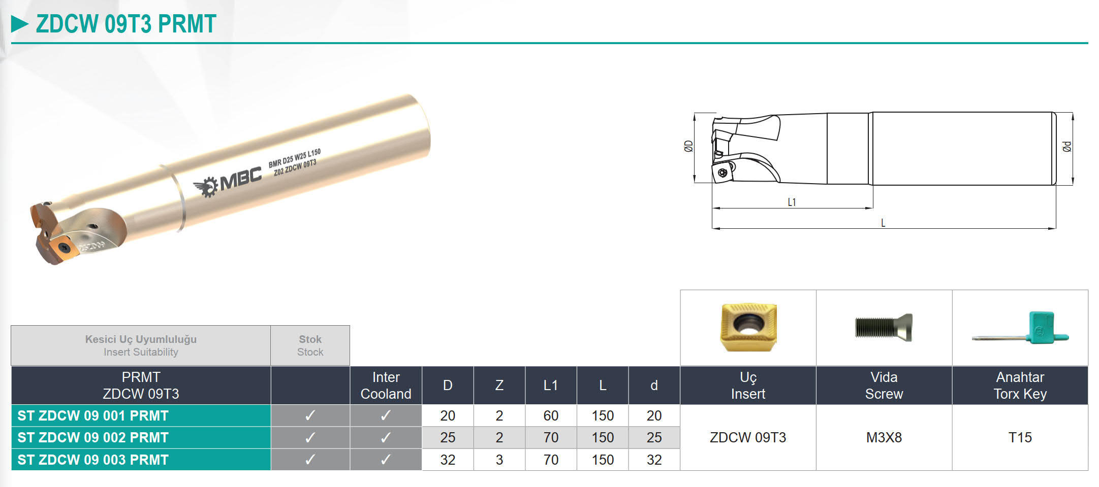 C168-030 ST ZDCW 09 003 PRMT FREZ TRZPIENIOWY BRM D32 W32 L150 Z03 ZDCW 09T3 SZT. 327,80