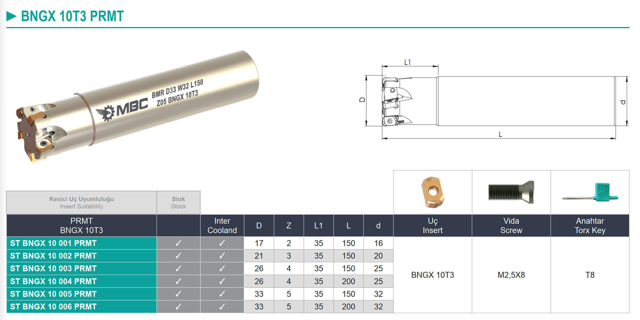 C152-050 ST BNGX 10 005 PRMT FREZ TRZPIENIOWY BMR D33 W32 L150 Z05 BNGX 10T3 SZT. 444,60