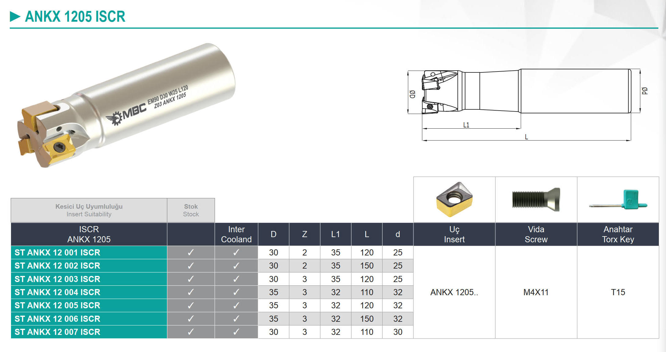 C007-050 ST ANKX 12 005 I FREZ TRZPIENIOWY EM90 D35 W32 L120 Z03 ANKX 1205 SZT. 242,88