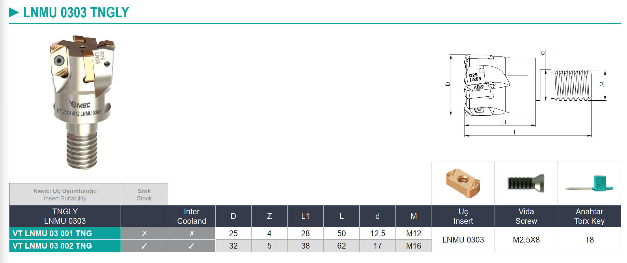 C199-020 VT LNMU 03 002 TNG FREZ Z GWINTEM VT BMR 32X5 M16 LNMU 0303 SZT. 381,46