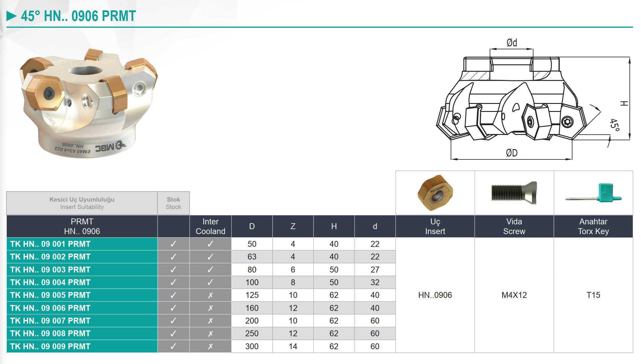 C117-010 TK HN.. 09 001 PRMT GŁOWICA FREZARSKA EM45 50X4 022 HN..0906 SZT. 320,88
