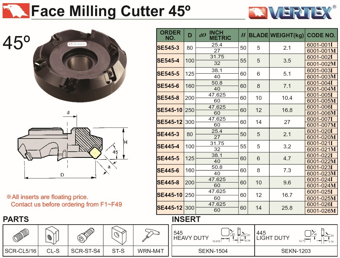 C121-020 6001-002M GŁOWICA FREZARSKA SE545-4 100 SEKN1504 SZT. 518,33