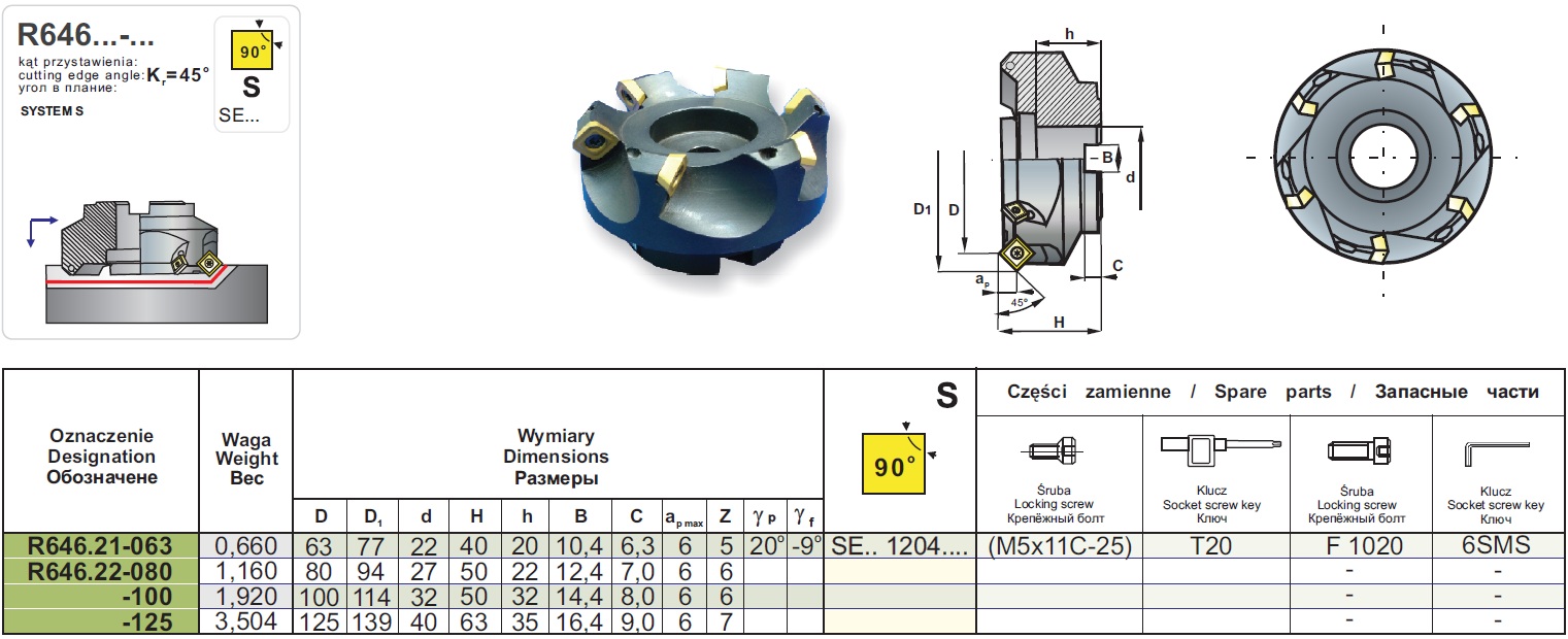 C126-020 R646.21-063 GŁOWICA FREZARSKA R646.21-063 SE..1204 SZT. 822,62
