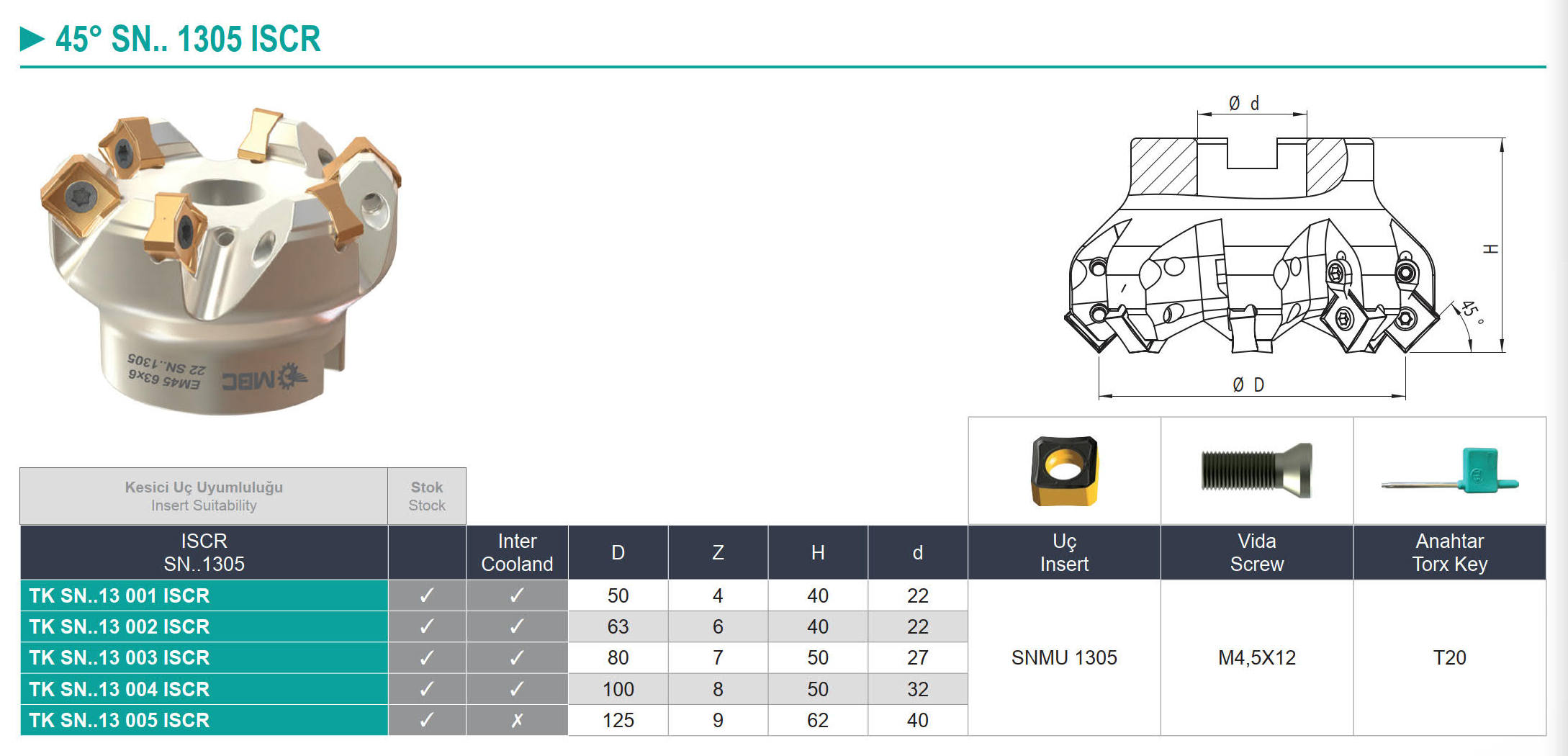 C132-030 TK SN 13 003 I GŁOWICA FREZARSKA EM45 80X7 027 SN..1305 SZT. 420,40