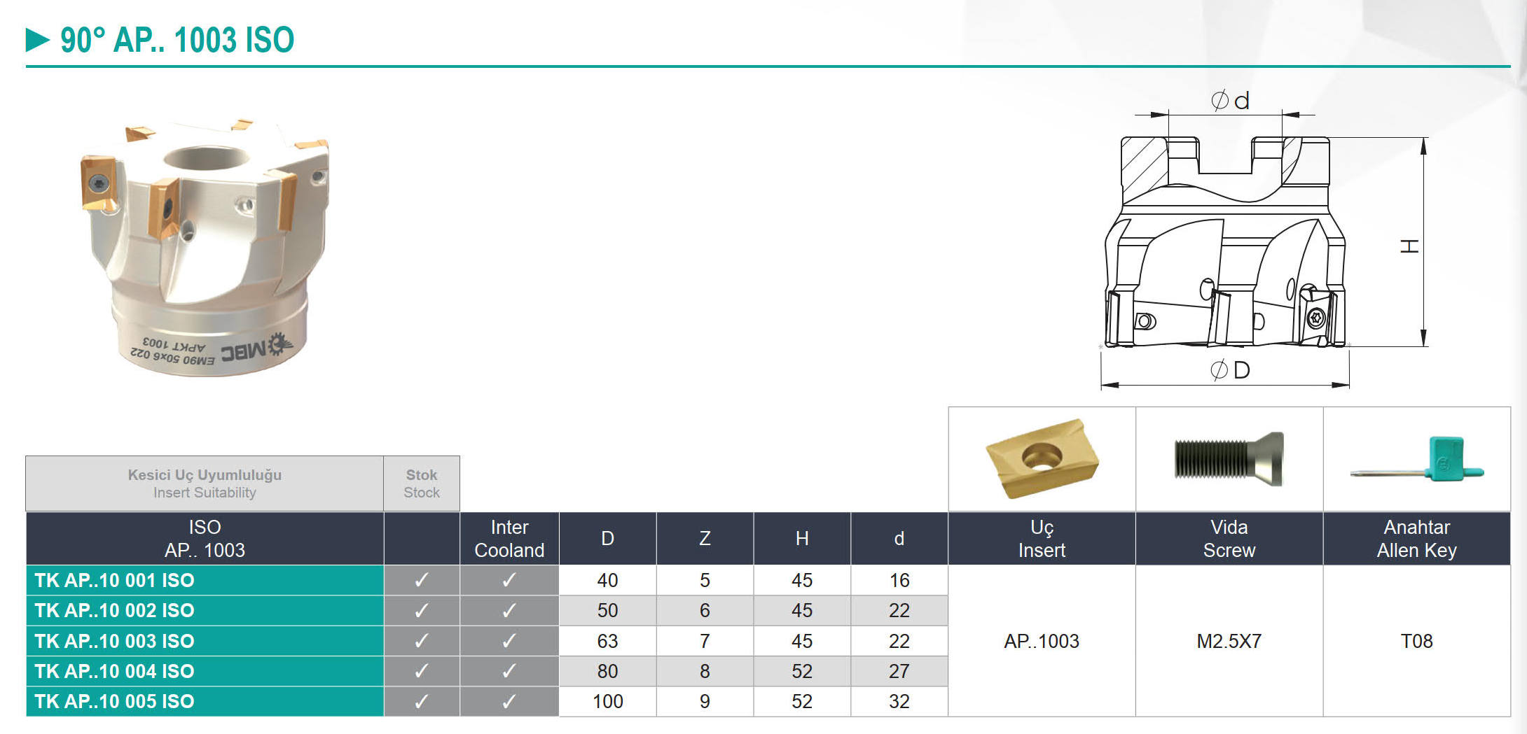 C053-005 TK AP..10 001 (S) ISO GŁOWICA FREZARSKA EM90 40X5 016 APKT10 coolant SZT. 206,75