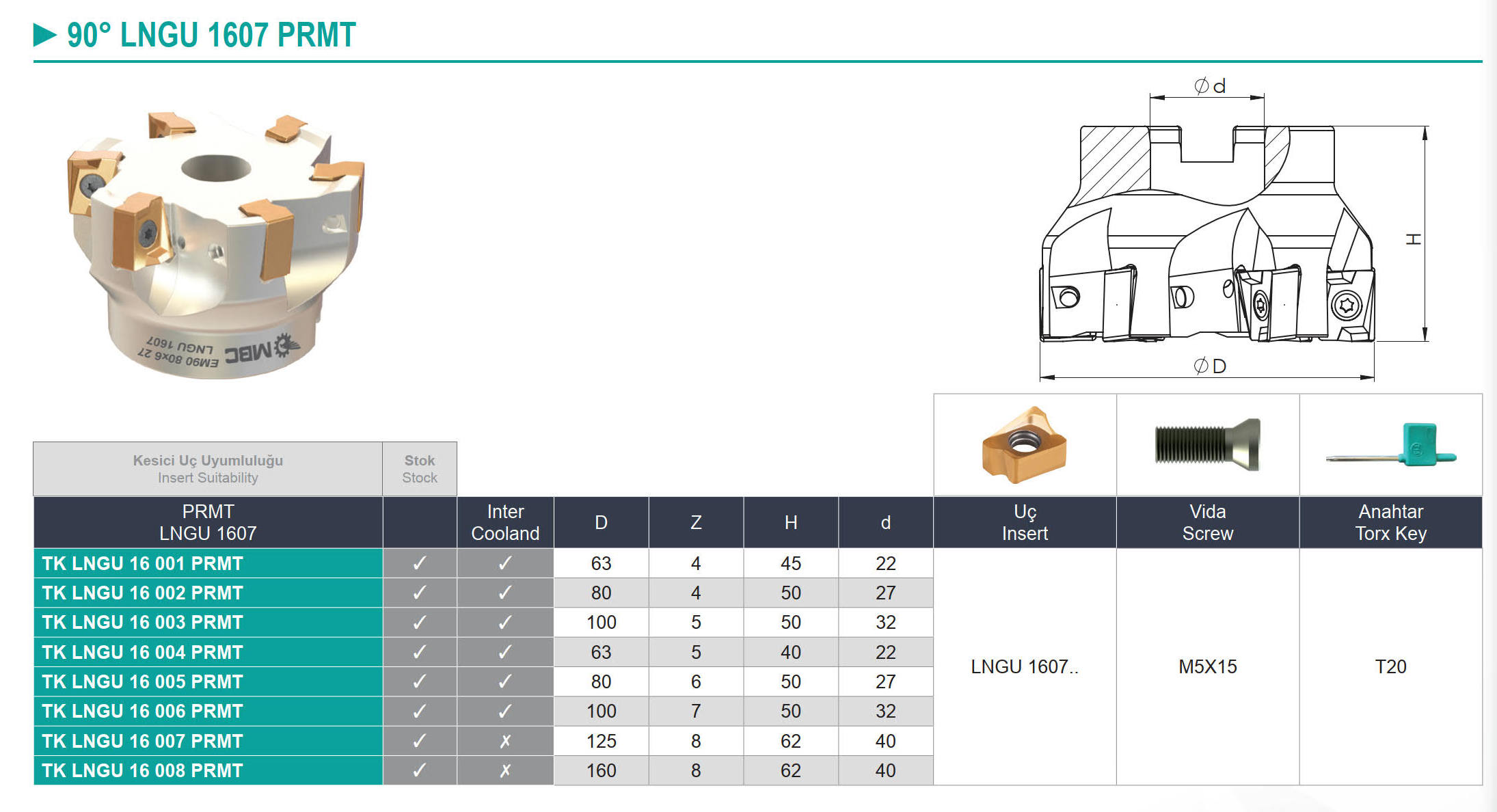 C070-060 TK LNGU 16 006 PRMT GŁOWICA FREZARSKA EM90 100X7 032 LNGU 1607 SZT. 420,40