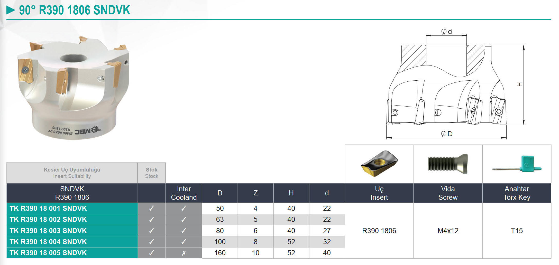 C090-050 TK R390 18 005 SNDVK GŁOWICA FREZARSKA EM90 100X10 040 R390 1806 SZT. 639,11
