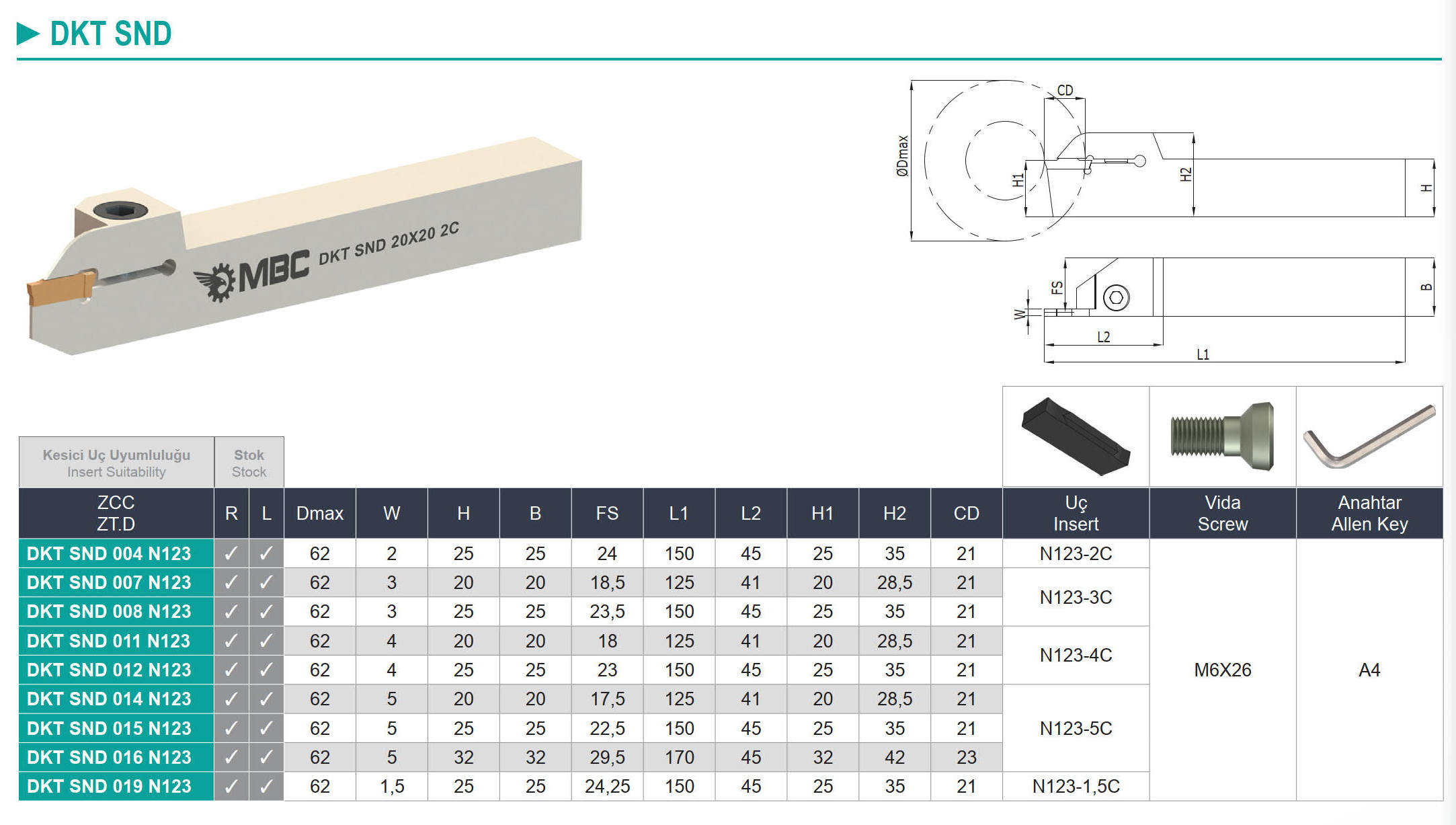 NÓŻ TOKARSKI DKT SND 20X20-LH 5C N123