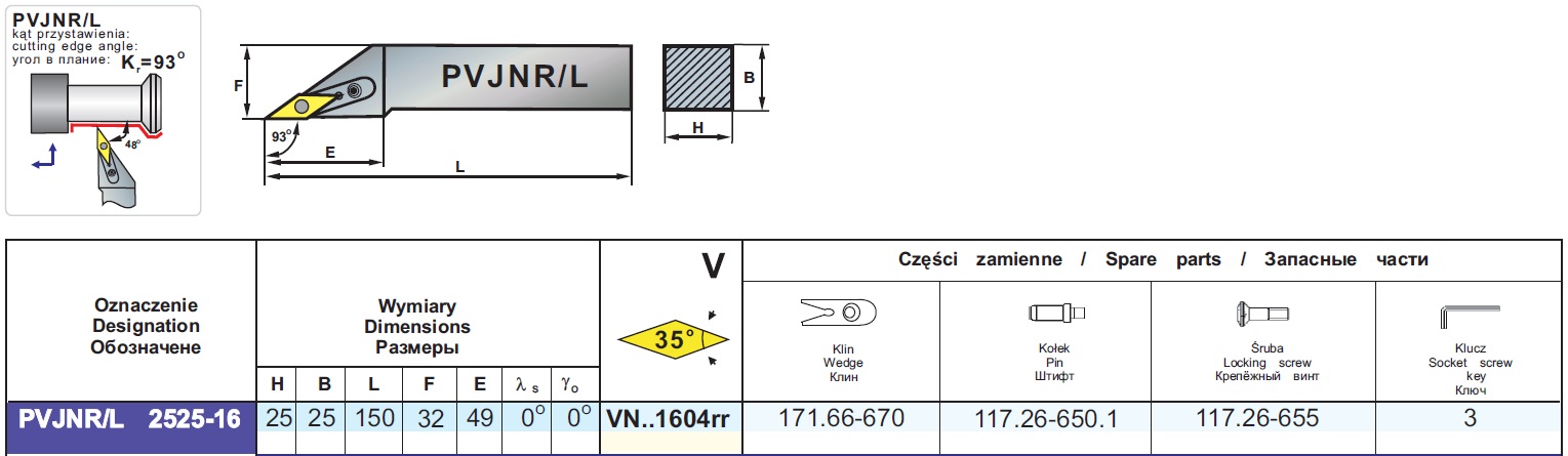 C445-040 PVJNR2525-16 NÓŻ TOKARSKI PVJNR 2525-16 SZT. 440,49