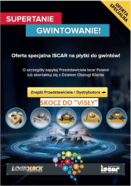 Szukasz płytek do gwintowania w cenach, które naprawdę robią "ROBOTĘ"? Mamy dla Ciebie świetną wiadomość! Płytki ISCAR w cenach płytek z "Dalekiego Wschodu" Ruszyła specjalna oferta ISCAR na płytki do gwintów, dzięki której zredukujesz koszty obróbki, jednocześnie utrzymując najwyższą jakość i powtarzalność procesu. Promocja dotyczy wszystkich płytek do gwintów i nie ma wymagań ilościowych. O szczegółach dowiesz się w dziale sprzedaży.
