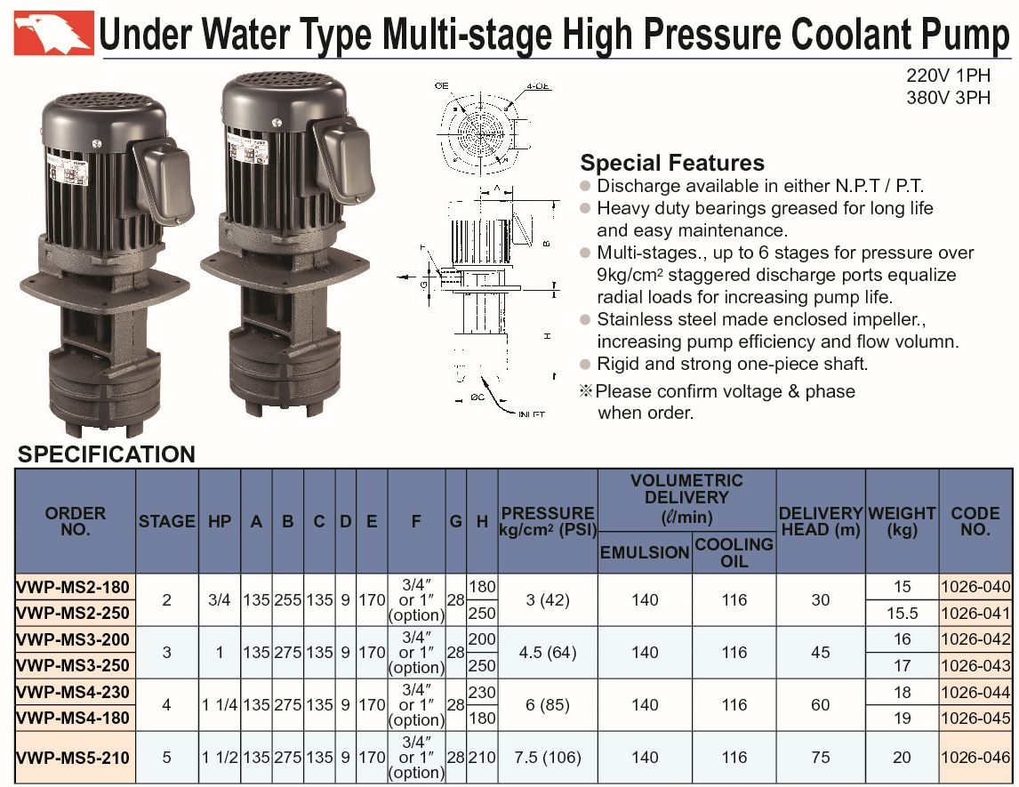 F990-070 1026-046 POMPA CHŁODZIWA WYSOKIEGO CIŚNIENIA VWP-MS5-210 SZT. 3 153,01