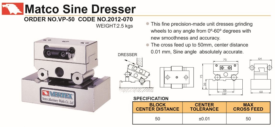 F978-070 2012-070 PRZYRZĄD SINUSOWY DO PROFILOWANIA ŚCIERNIC VP-50 SZT. 666,43