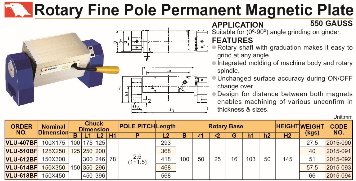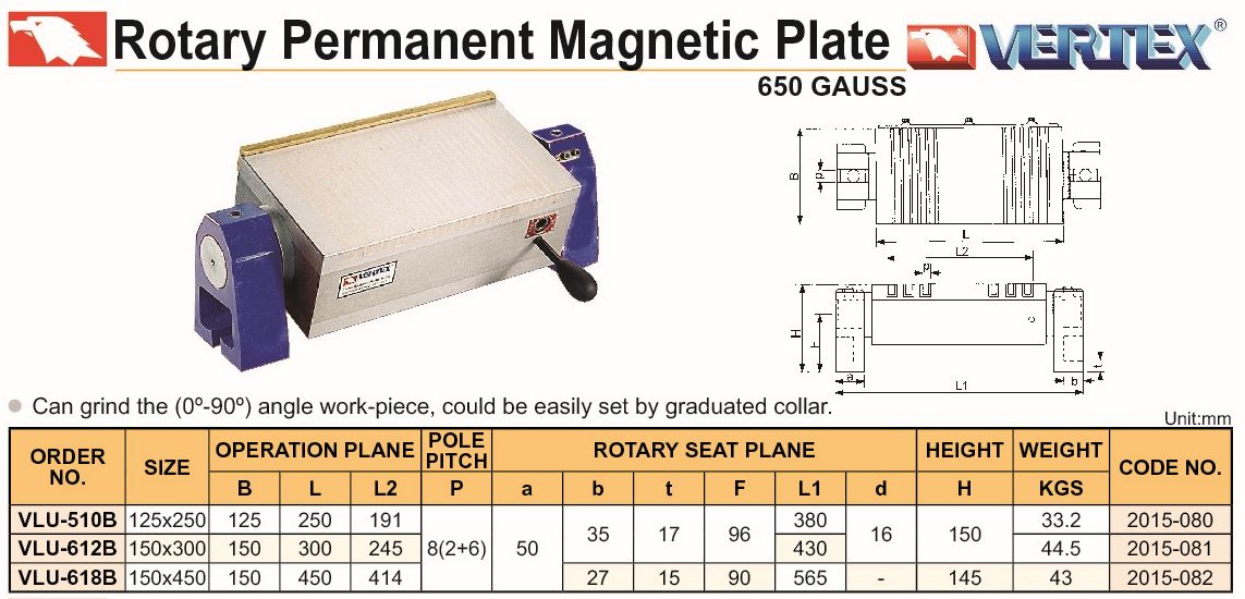 F835-180 2015-094 STÓŁ MAGNETYCZNY UCHYLNY 1-OS. VLU-618BF SZT. 7 773,70