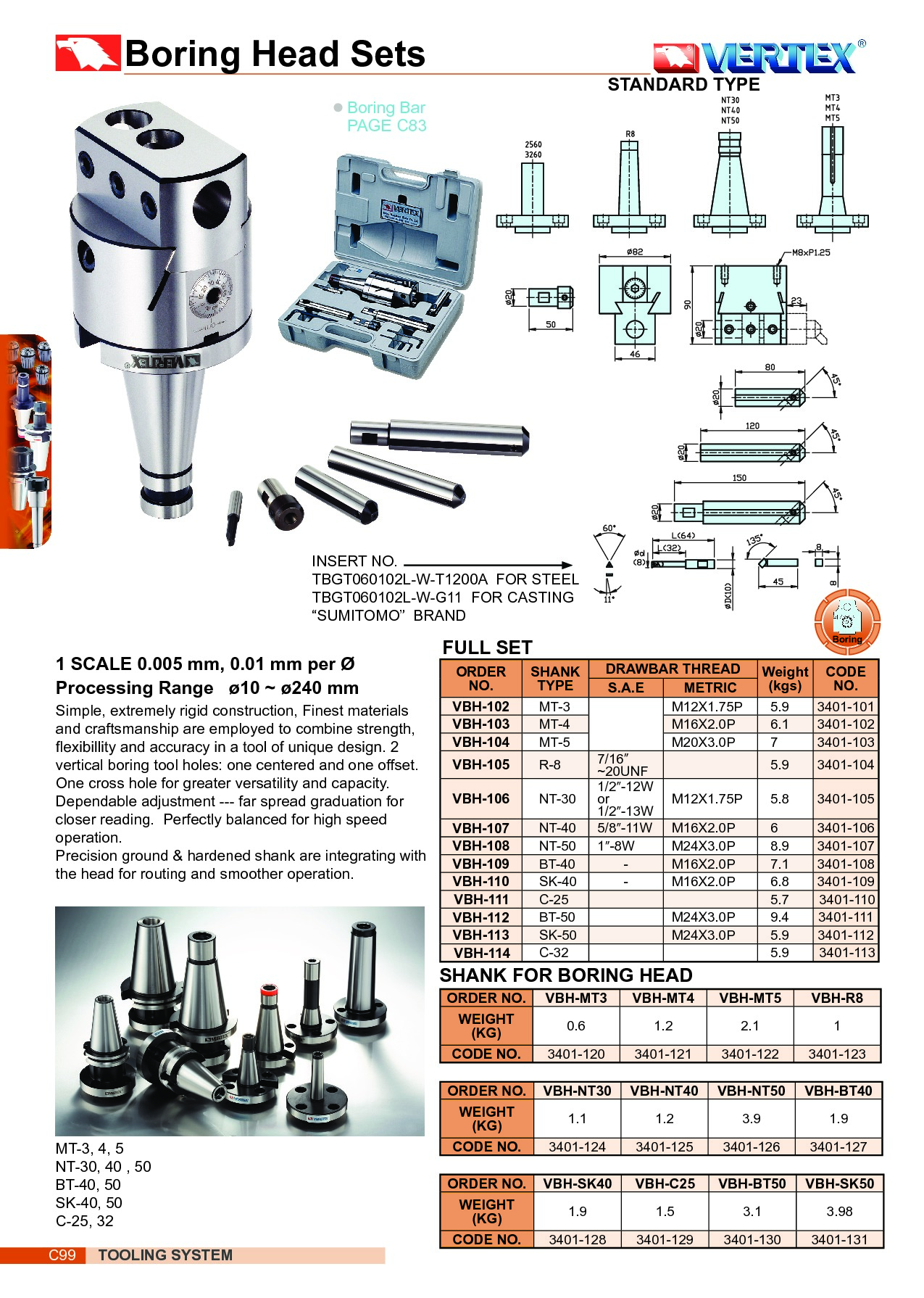 WYTACZADŁO VBH-109 BT-40 10-240 0.01