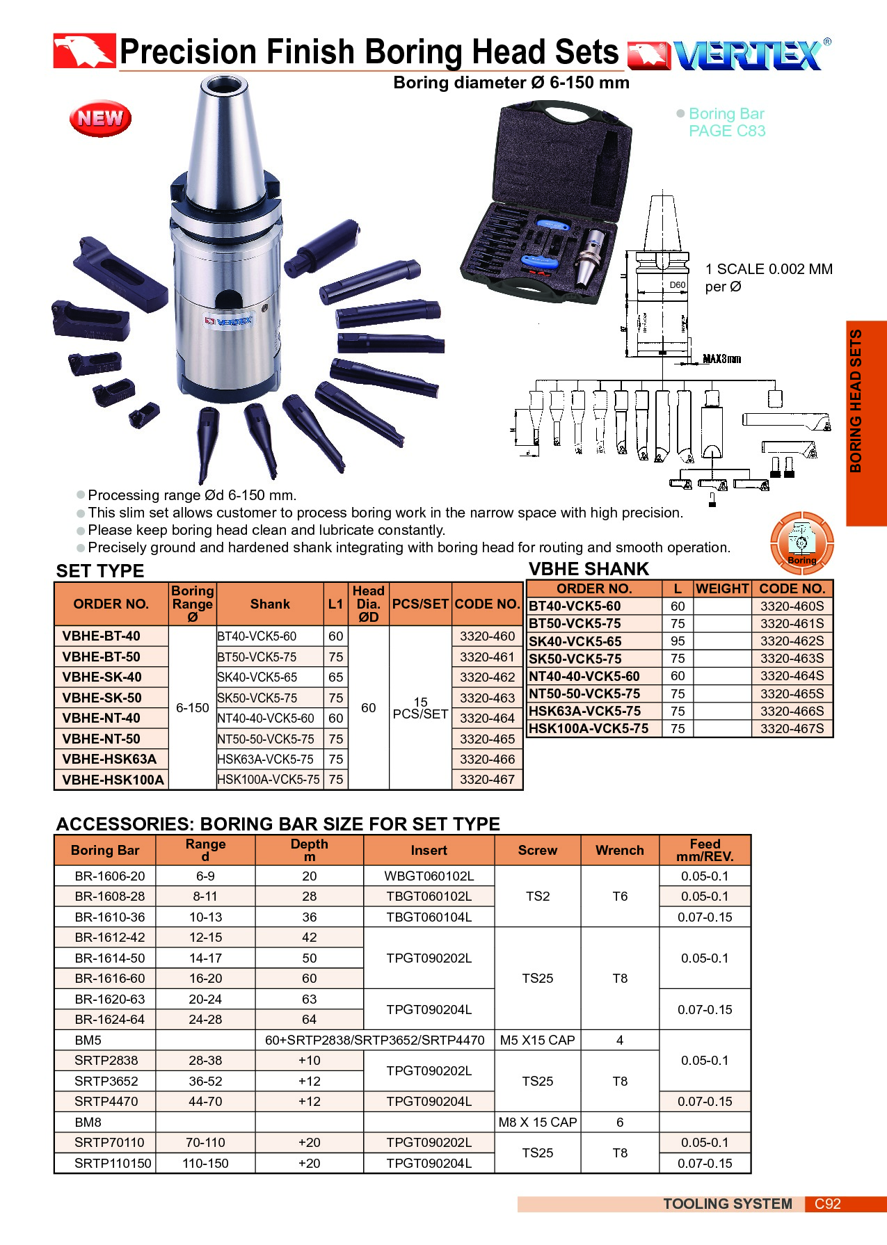 Zestaw wytaczarski może wykonywać precyzyjne otwory o średnicach od 6 mm do 150 mm. Dzięki zastosowaniu precyzyjnej śruby mikrometrycznej można uzyskać dokładność otworu do 0,002 mm.