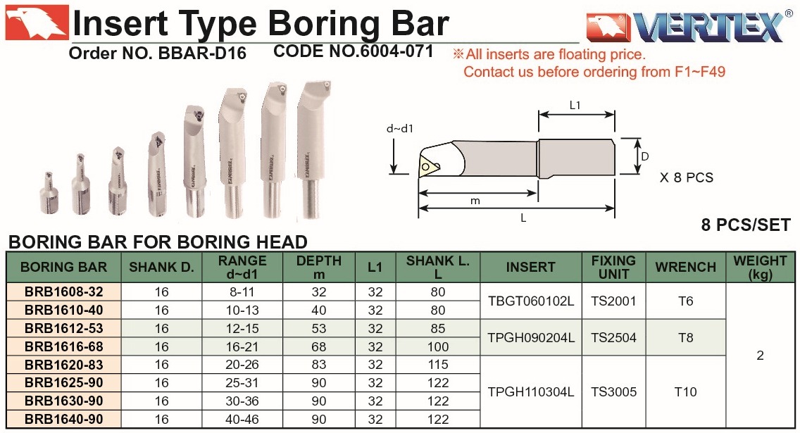 F508-060 6004-071 ZESTAW WYTACZAKÓW BRB-D16-8PCS/SET KPL. 1 611,14