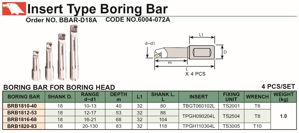 F508-080 6004-072A ZESTAW WYTACZAKÓW BRB-D18A-4PCS/SET KPL. 833,11