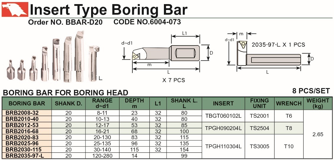 F508-100 6004-073 ZESTAW WYTACZAKÓW BRB-D20-8PCS/SET KPL. 1 665,54